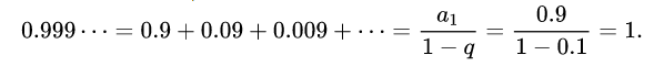 0.999...可以看成首项为 0.9, 公比为 0.1 的等比数列