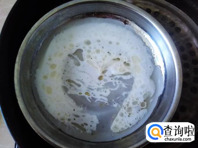把少量的米浆倒进去放锅里大火蒸20秒左右,然后打开放适量的肉末进去,再盖上盖子大火蒸2分钟左右。【米浆放少点,越薄越滑嫩】