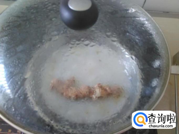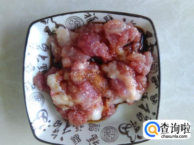 首先把米泡1个晚上,瘦肉剁成肉末,加适量的盐、生抽、料酒腌制几分钟。