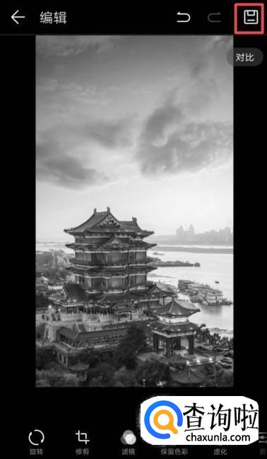 然后我们点击右上角的保存按钮就可以了。这样我们就将照片转换为素描图片了。