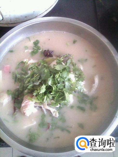 然后往锅中放入适量的水,用大火烧开,然后等锅中的汤汁变白后,再调入适量的盐,胡椒粉进行调味