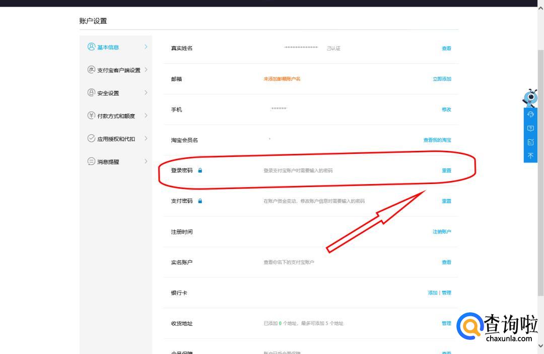 在这里就能看到我们的个人信息,找到“登录密码”,点击后面的“重置”。