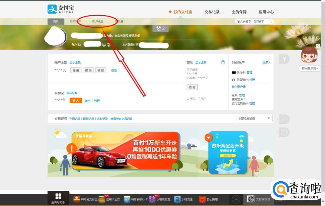 登录成功后,点击左上角的“账户设置”。