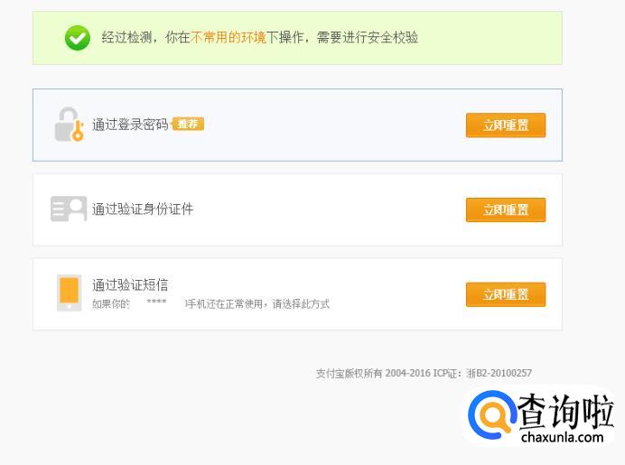 等待系统检测环境安全后就能任意选择一种方式重置密码啦。