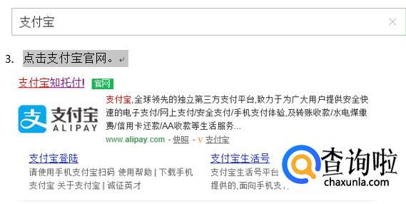 首先,打开浏览器,搜索“支付宝”。