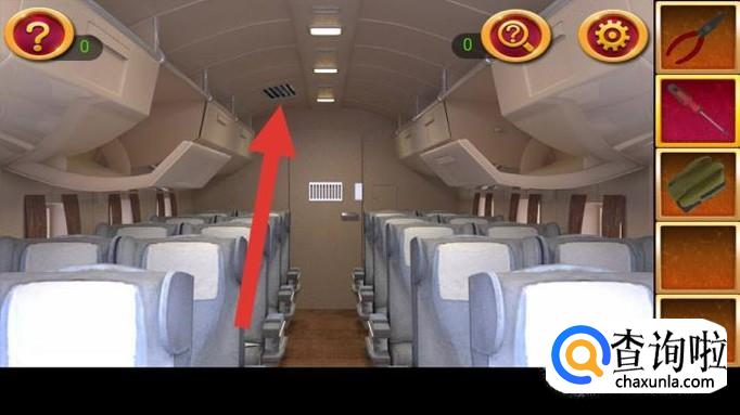 点击左边椅子上方储物箱,根据提示解开密码锁,获得降落伞