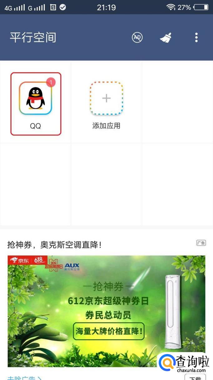 此时发现平行空间是这样的界面,我们点击QQ,发现可以登录另一个QQ账号,而手机上的QQ并没有下线。