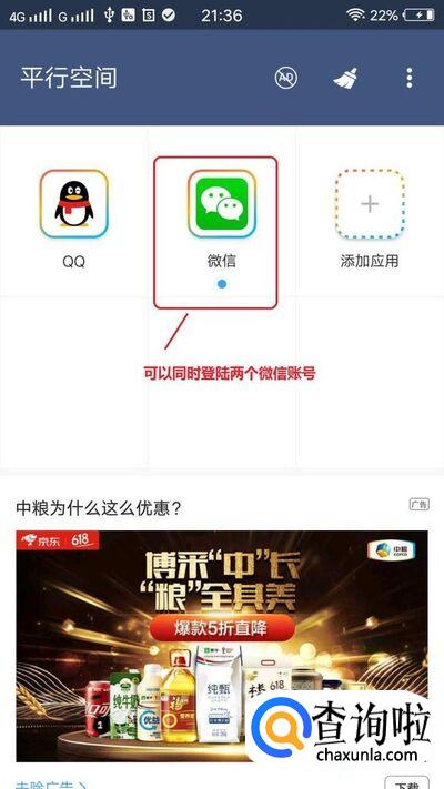 我们还可以添加别的应用进来,这个app对双卡双待的手机特别有用,可以同时登陆两个微信账号。