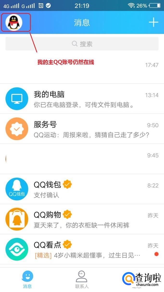 可以看到两个QQ都是在线的,互不影响,点击手机上的“主页”键可以互相切换。