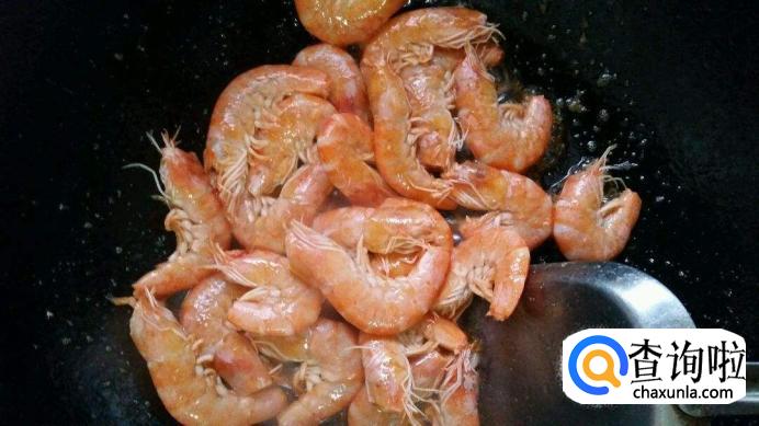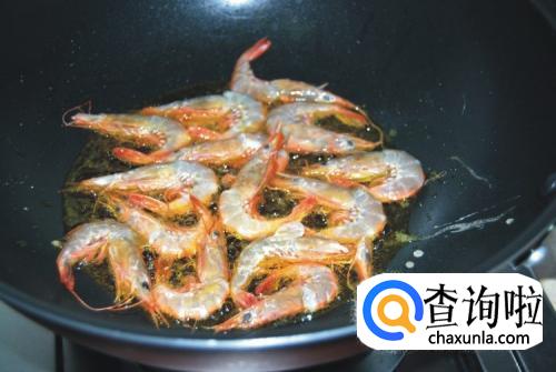 然后我们将之前处理过的虾放入锅中翻炒。