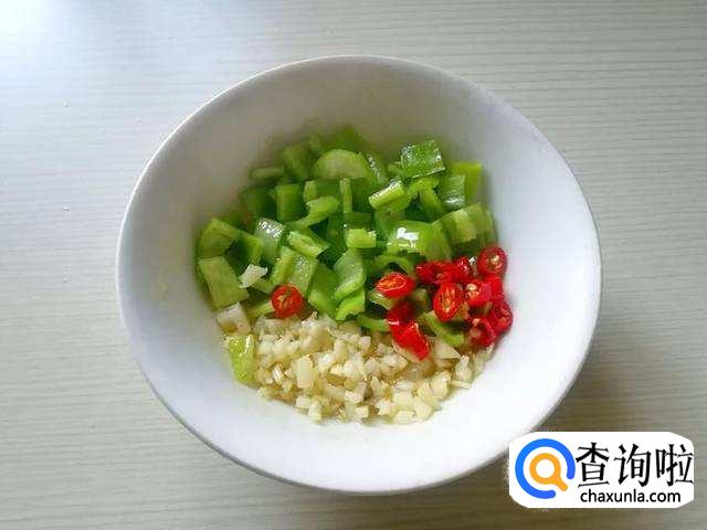 然后,我们再来处理配菜。将葱、蒜切成小丁,辣椒切段。