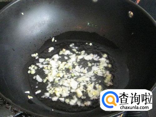 然后,开火,我们在锅里面倒入油。等油热过后,我们先将辣椒和蒜放入锅中,爆香。