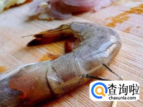 然后,我们把虾背用刀子划开,取出里面的虾线。并且,这样,虾肉更容易入味。