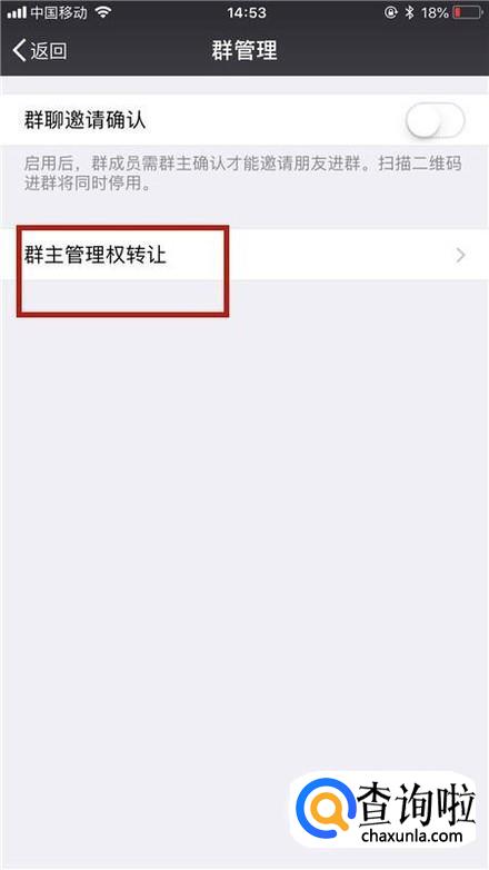 然后点击群主管理权转让,如下图所示