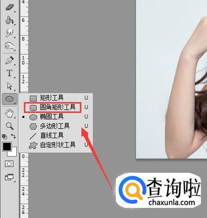 使用ps将我们的图片打开,然后在工具箱内找到圆角矩形选项,如图所示: