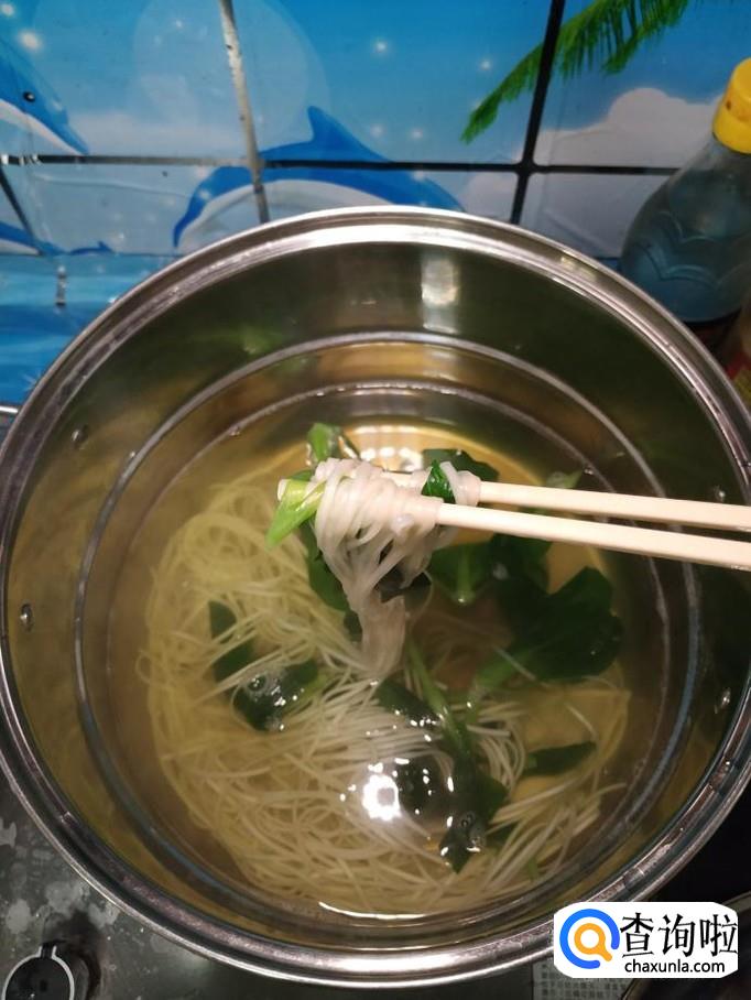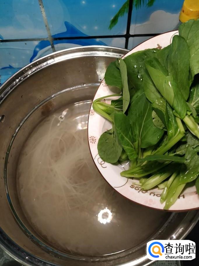 锅中烧开水,水开后,将面条放入锅中,再将青菜放入锅中,水沸腾后,加入半碗清水,再煮一次,将面条煮熟后捞出。