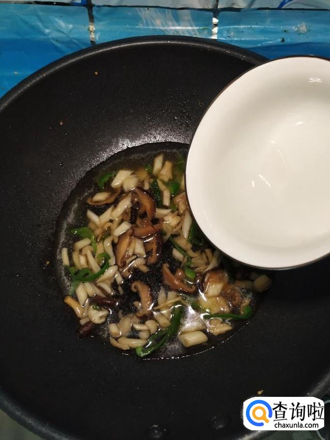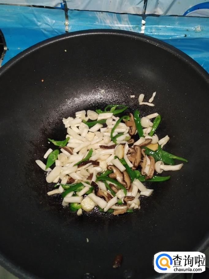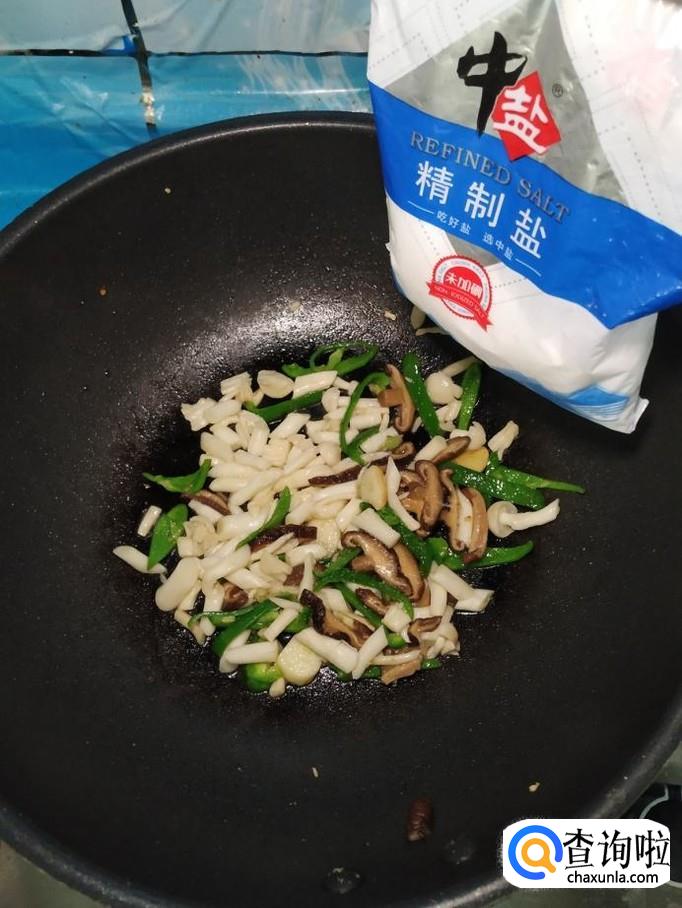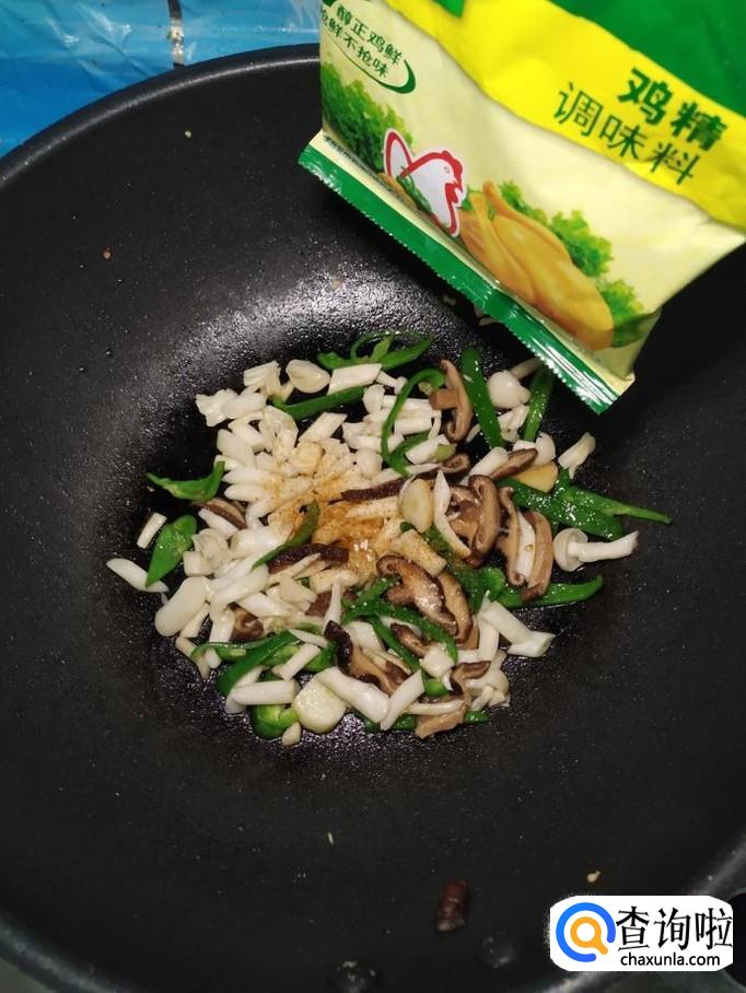 海鲜菇适量,香菇适量,青椒适量,蒜适量,盐适量,鸡精适量,五香粉适量,生抽适量,淀粉适量。