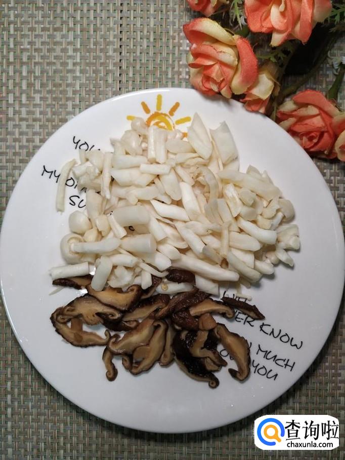 准备适量海鲜菇,用清水洗净,准备适量干香菇,用清水泡发;再准备适量彩菜椒,洗净后备用,这里选用的菜椒并不辣。