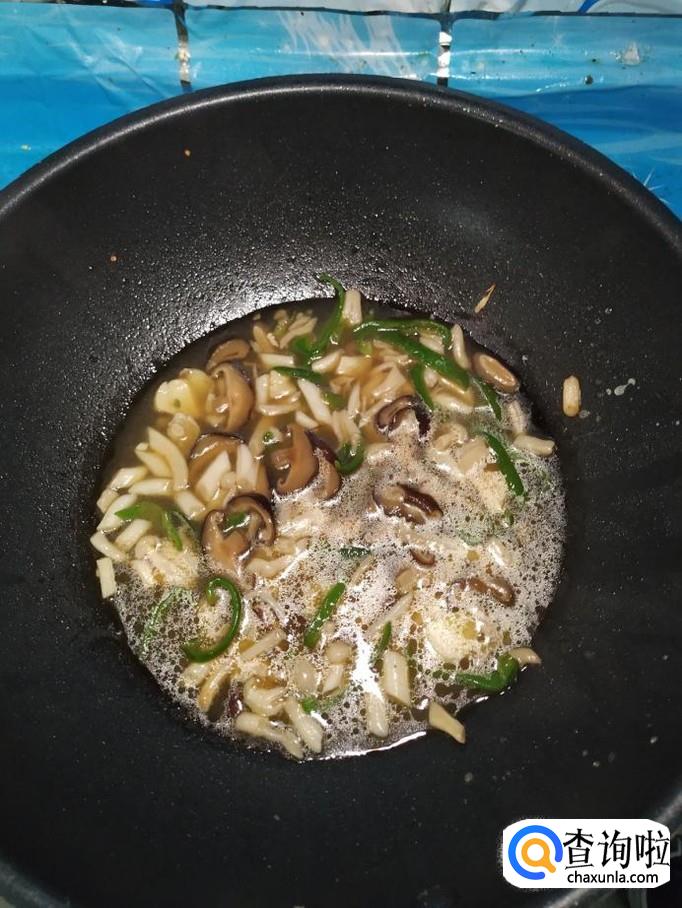加入少许清水,大火将水烧开,然后改小火,煮5分钟左右。然后用水淀粉勾芡一下,熬至汤汁浓。