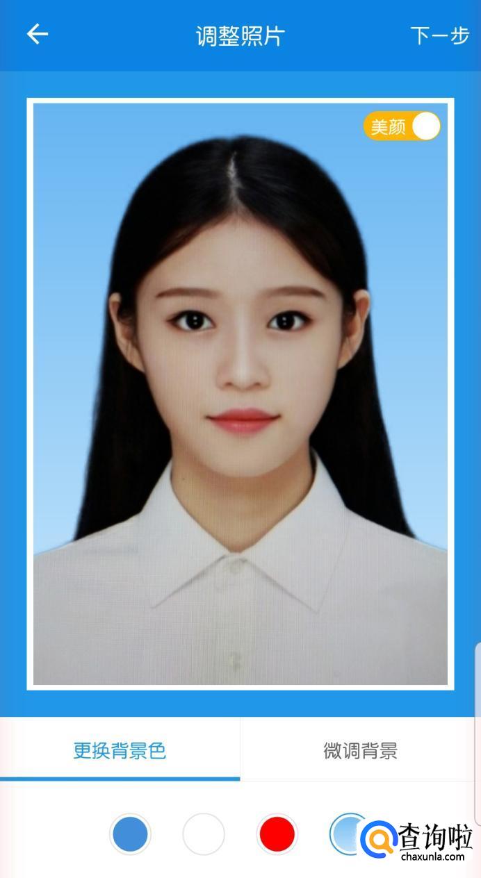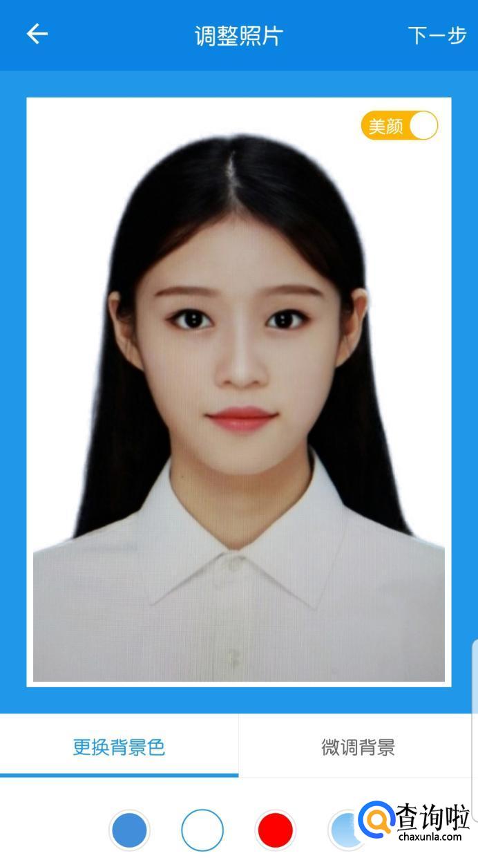 这时就开始调整背景图颜色,根据自己需要选择背景颜色,一般为蓝白红浅蓝,选择的时候系统会自己进行抠图修改,如果有些细节没有修改好的,则需要自己调整。