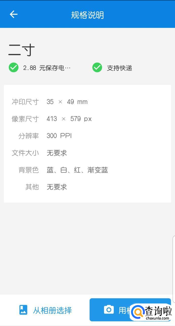 选择好我们需要的尺寸,版式要求仔细阅读过后,就可以点击右下角进行拍摄。