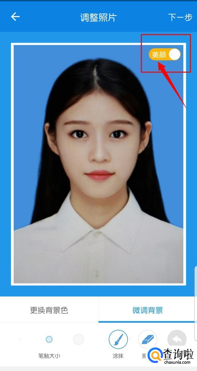 在背景颜色调整完毕以后可以进行美颜了,区别不宜过大会,看起来精神即可。