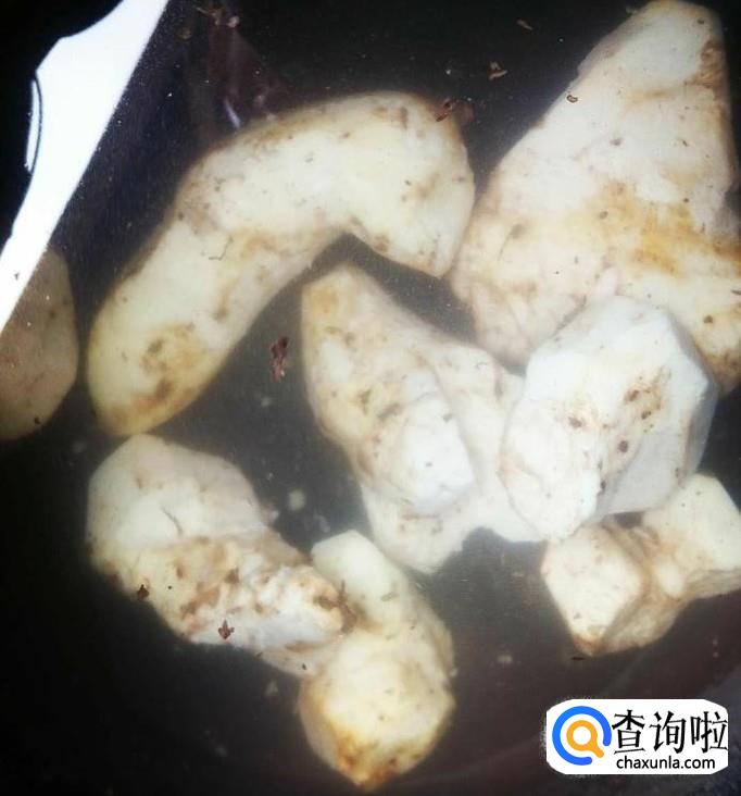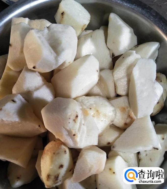脚板芍处理干净,泡在水中,再清洗干净,然后再切成小块,装盘备用