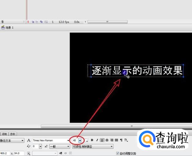 将当前的文本字号,通过“属性”面板调整到 45字号 。