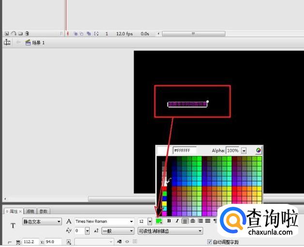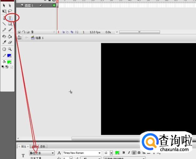 在工具箱里,选择文字工具,将文本类型设为:静态文本。