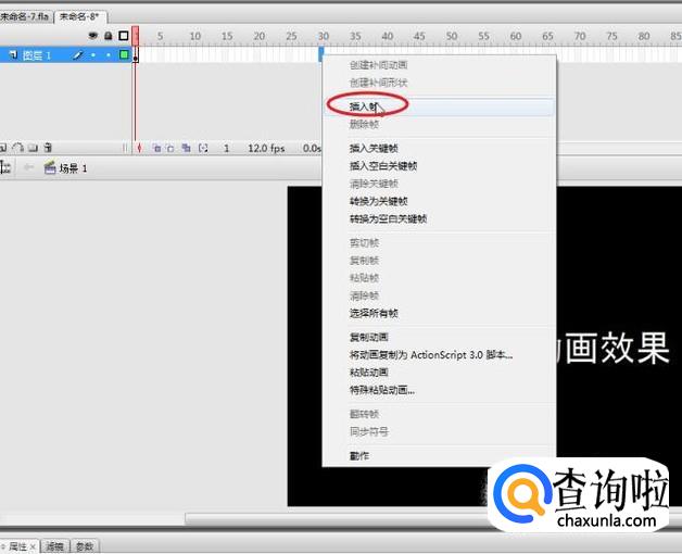 在时间轴上的第30帧,右击鼠标选择“插入帧”命令延长帧。