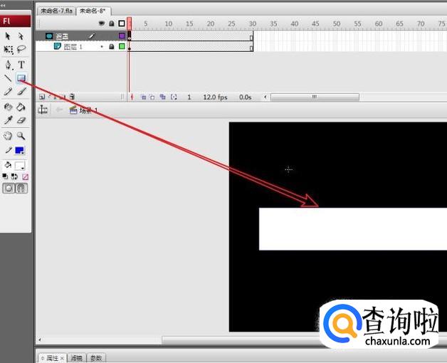 选择遮罩图层,通过“矩形工具”,在舞台上绘制一个可以遮盖文字的矩形。