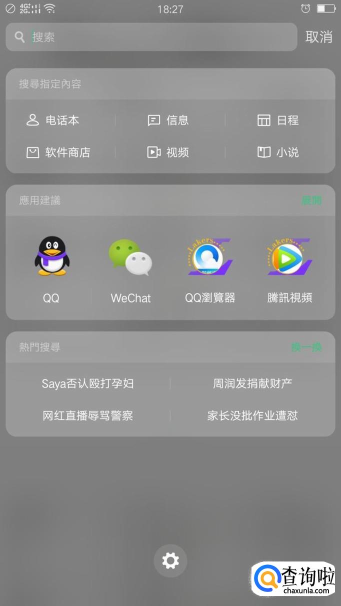 在手机屏幕空白出,轻轻用两指滑下,即可打开搜索功能。