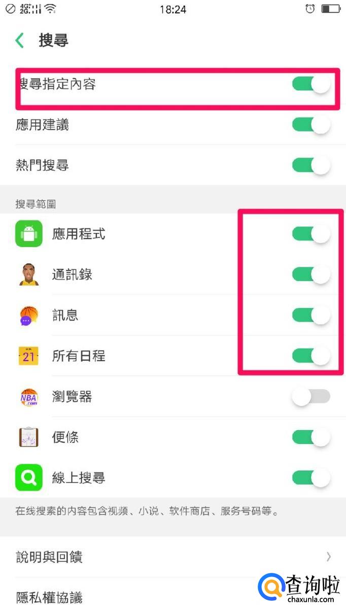 在搜寻里面【搜寻制定内容】指开通了这项功能,下面的就是你能搜到的各个应用程式。