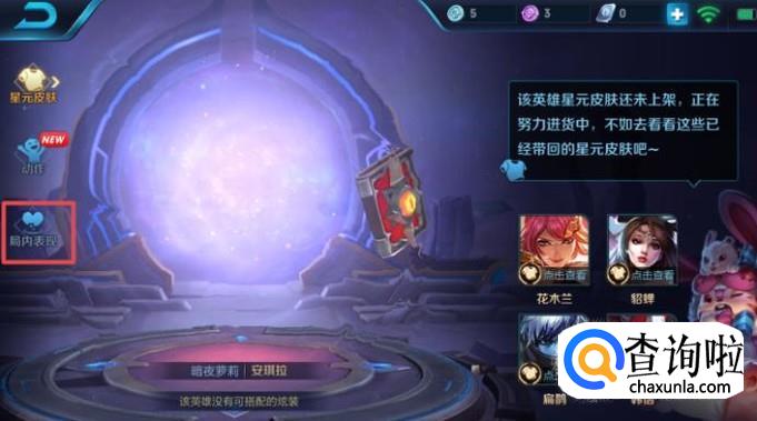弹出的界面,我们点击局内表现;