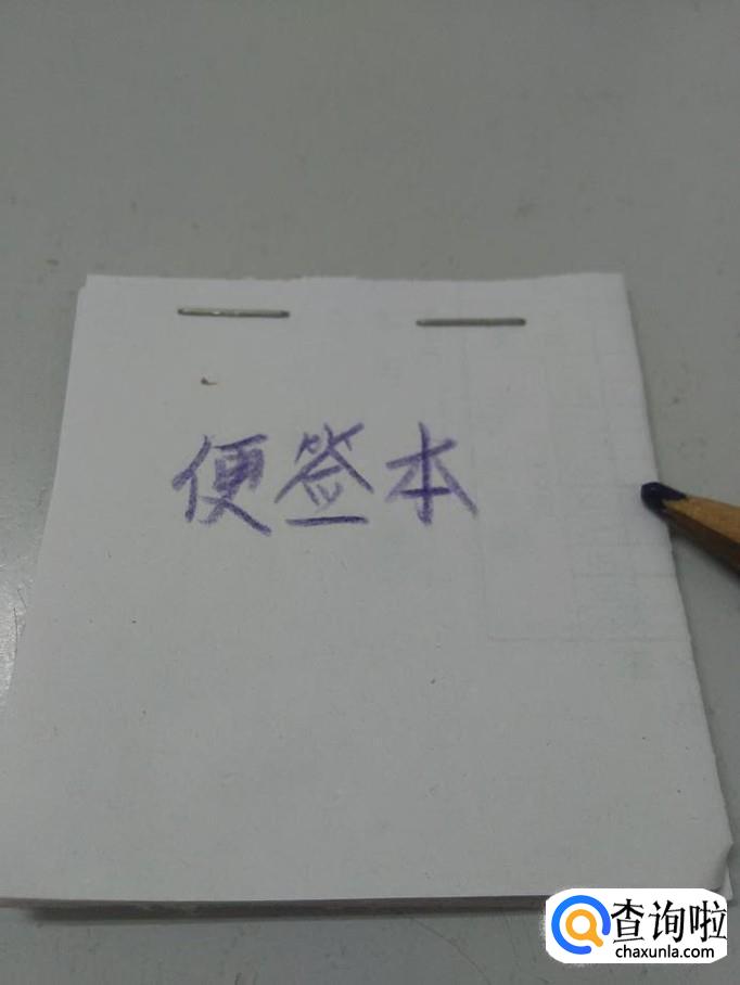 用彩笔在纸的中间写下便签本三个字,如果是其他用途的本,就写其他的字,这样,一个简单的小本子就订好了。