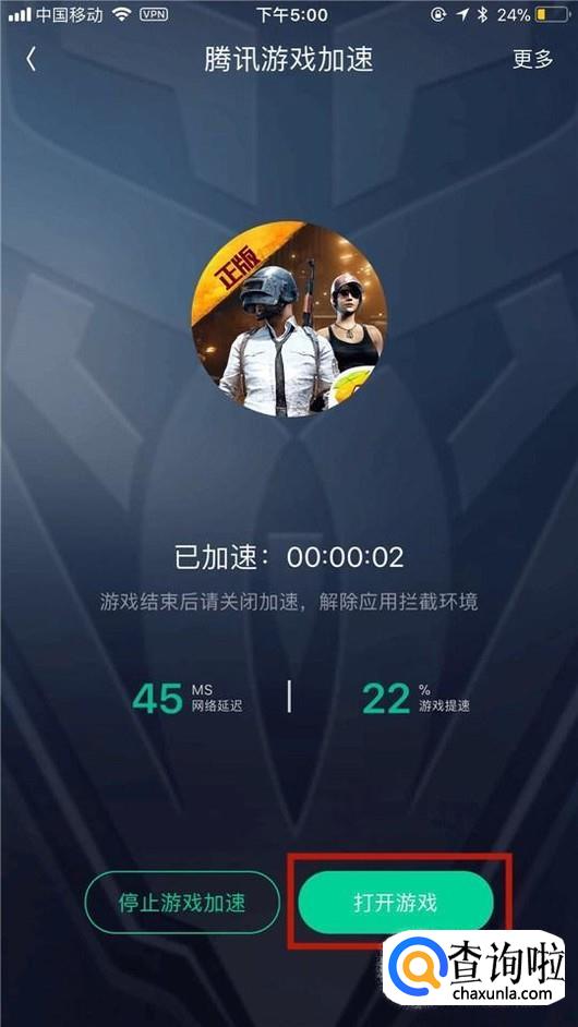 最后点击打开游戏就可以了。这样设置完成,我们会发现我们的手游,吃鸡游戏明显不卡了。