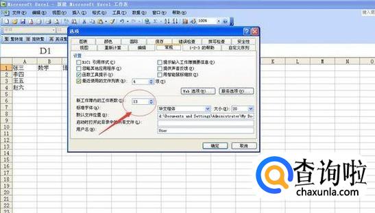 如果要添加非常多的表格,就采用第四种方法,因为比较简单小编就合为一步啦。首先点工具中的选择,在弹出的窗口中选择常规,最后在工作表数目中设置相应的数值就好啦。是不是很简单呢,大家都学会了吗