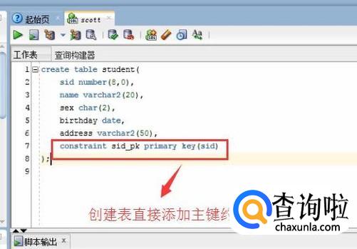 另外,创建表的时候可以直接添加主键约束,如下图所示,直接在表创建语句中添加constraint即可