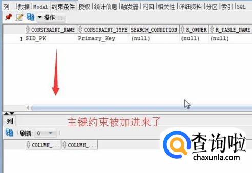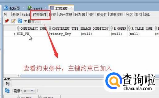 然后我们进入STUDENT表的约束添加页中可以看到,我们加的主键约束已经添加进去了,如下图所示