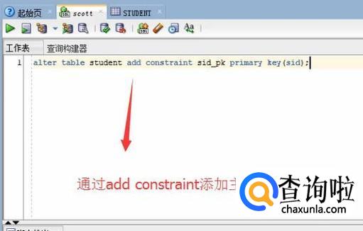 然后我们新建一个查询,在界面中输入如下的约束修改语句,如下图所示,主要通过add constranint来添加约束