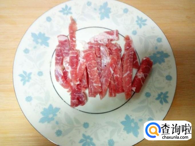 肉用水冲洗干净,控干水分,切成条。切好葱,姜,蒜备用。