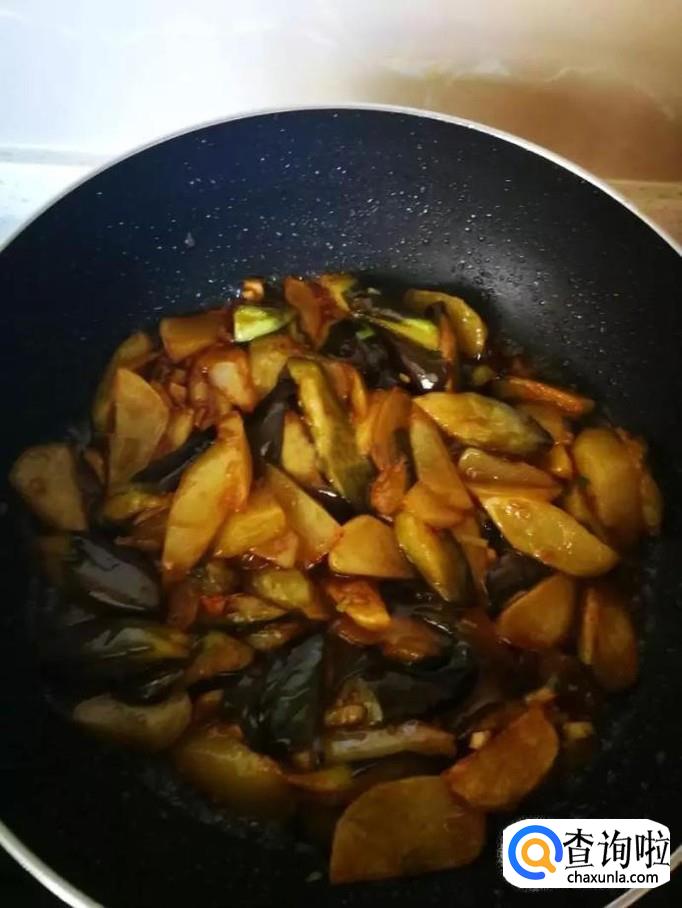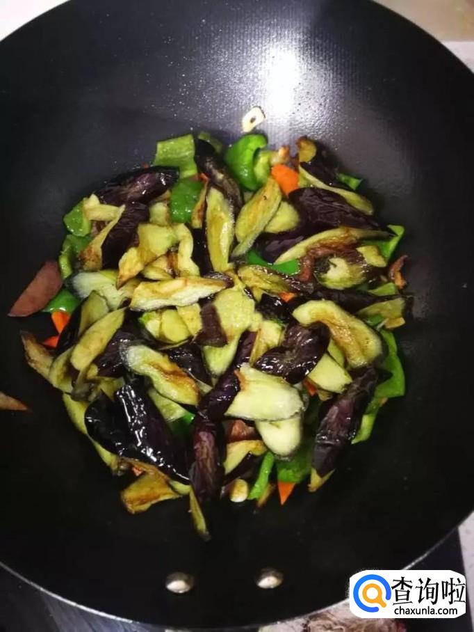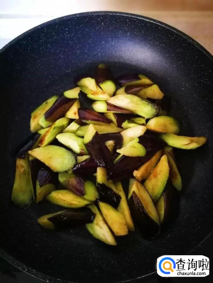 再倒入油,将茄子煎到金黄色的时候乘出来。