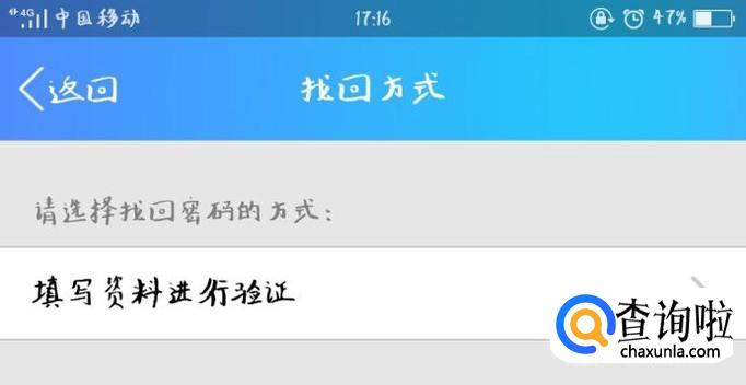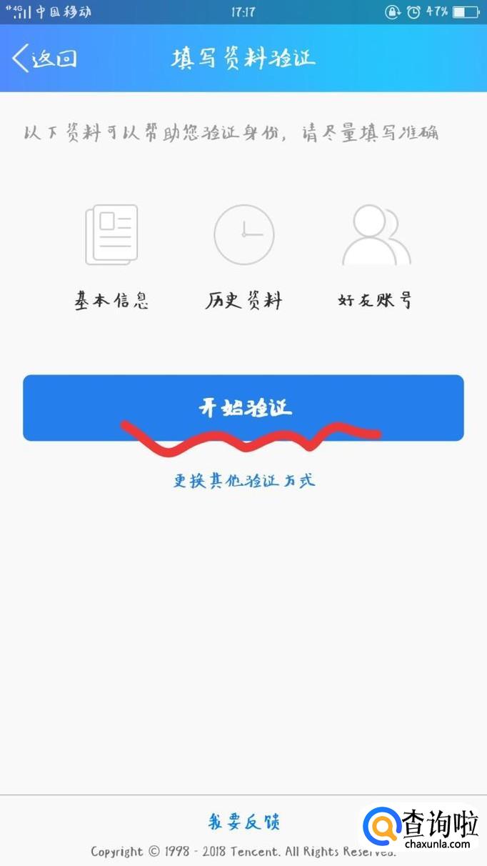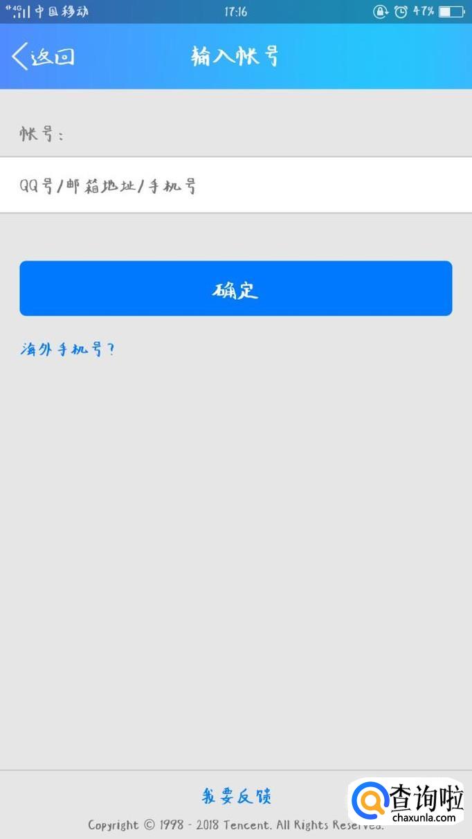 通过安全验证之后,填写QQ号码的资料进行验证,通过审核后即可找回密码。