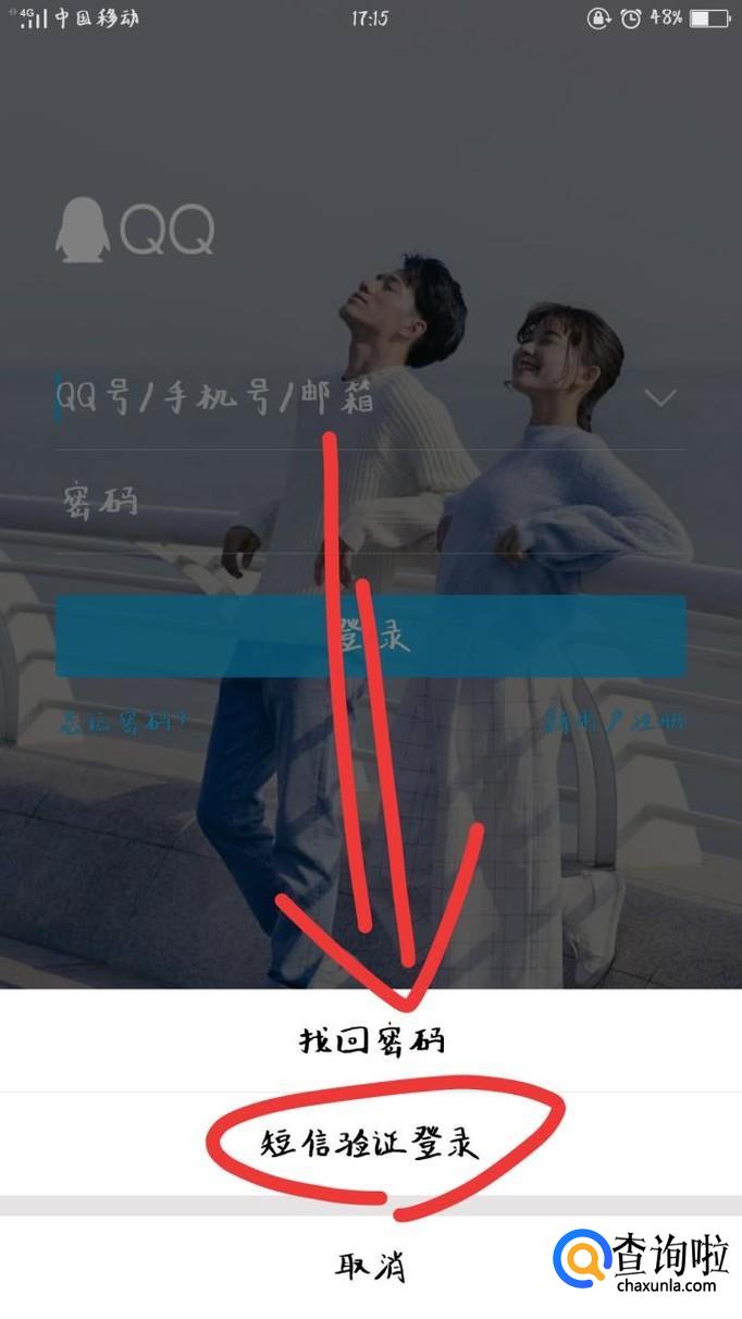 第二种方法选择“短信验证登录”方法找回。