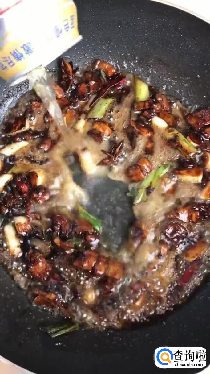 接着往锅中加入一瓶的啤酒和适量的清水,如下图所示。