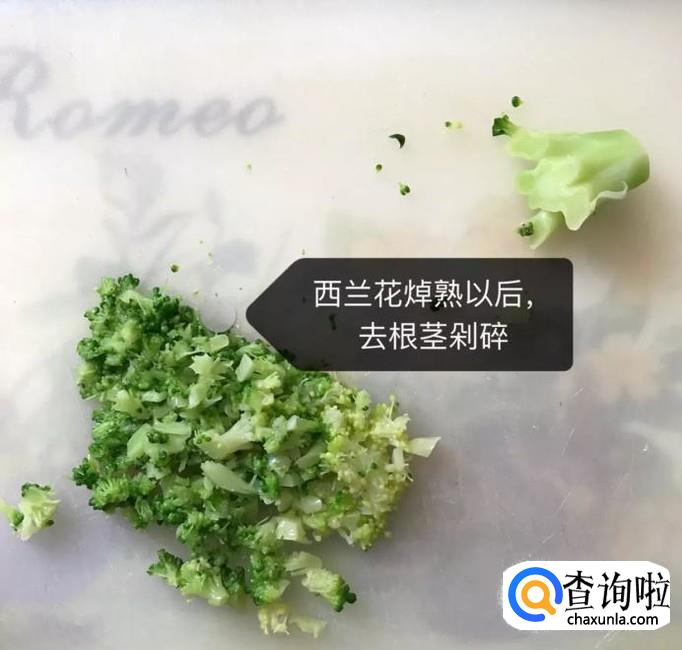 然后将焯熟的西兰花,去根茎剁碎,如图所示。