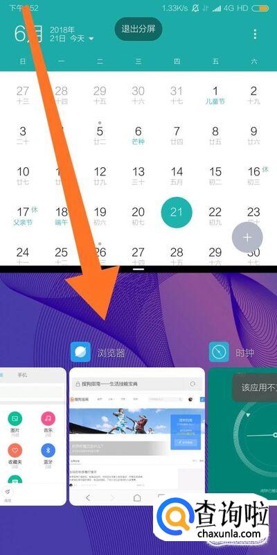 如果需要退出“分屏模式”,只需要从手机屏幕底部上滑即可。