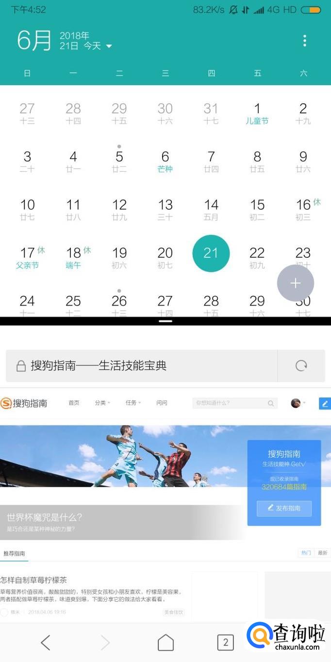 这样两个应用程序就能同时在手机屏幕上显示了。