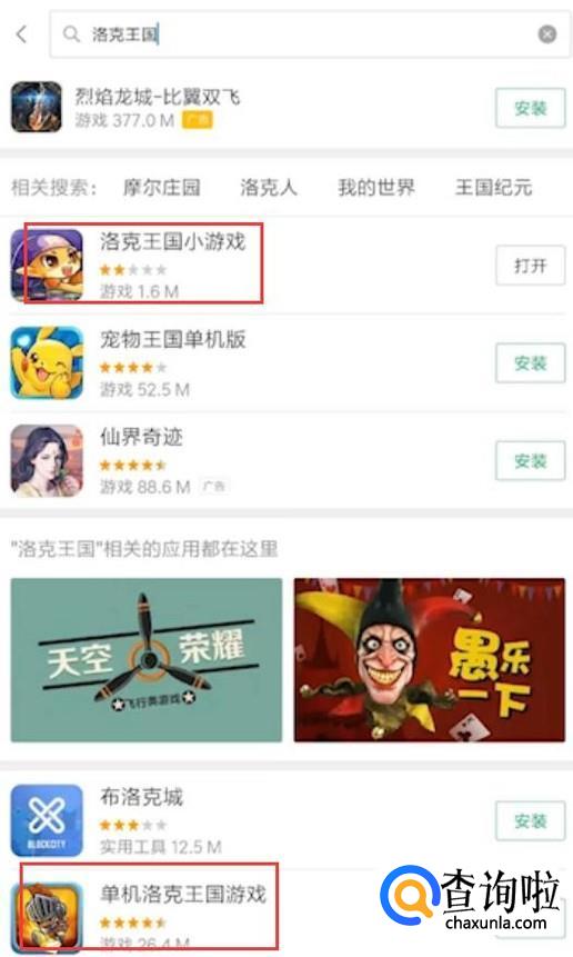 搜索关键字“洛克王国”,出现了小游戏和单机版,根据自己的需求选择安装。