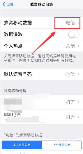 进入蜂窝移动数据,可以看到【切换蜂窝移动数据】是打开的。